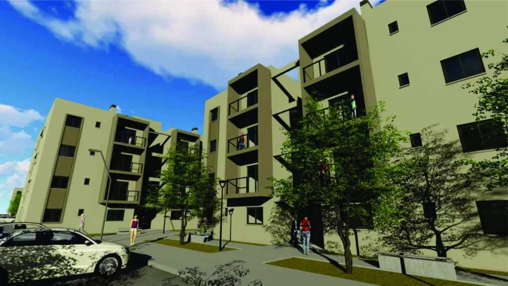 Cada departamento cuenta con 2 dormitorios, cocina, baño y balcón, priorizando el diseño, la iluminación y la ventilación natural. Las torres se agrupan dejando un espacio verde lineal, diseñado para el encuentro y la recreación. Además, las dársenas de estacionamiento en la calle aseguran una circulación fluida y ordenada, garantizando la continuidad en la movilidad del barrio.